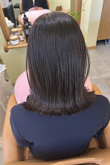 炭酸のお湯で毛穴の汚れや薬剤をやさしく流し、血行を促進。 カラー後のケアにも最適で、色もち・手触りがさらにアップします。5分間の癒しで、すっきりと軽い頭皮へに導く人気メニューです。